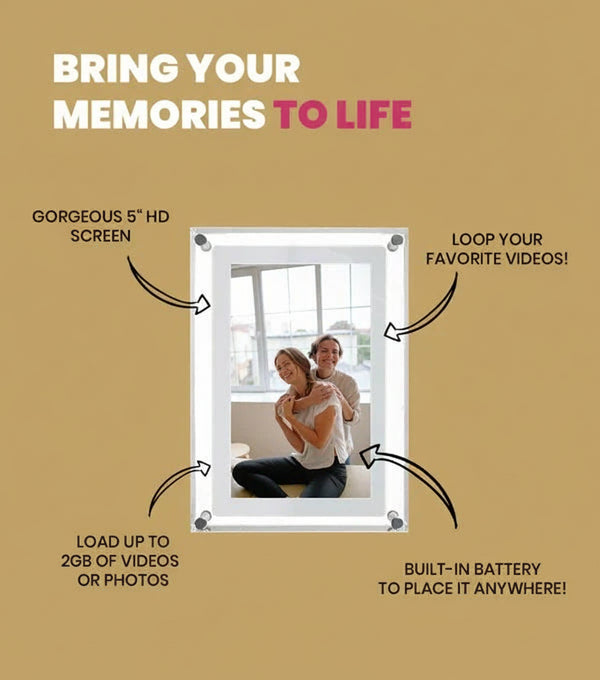 Endlessly replay memories captured on video in a beautiful 6.5" acrylic frame and 5" HD LCD screen. Simply connect it to your computer and put your best videos on it!